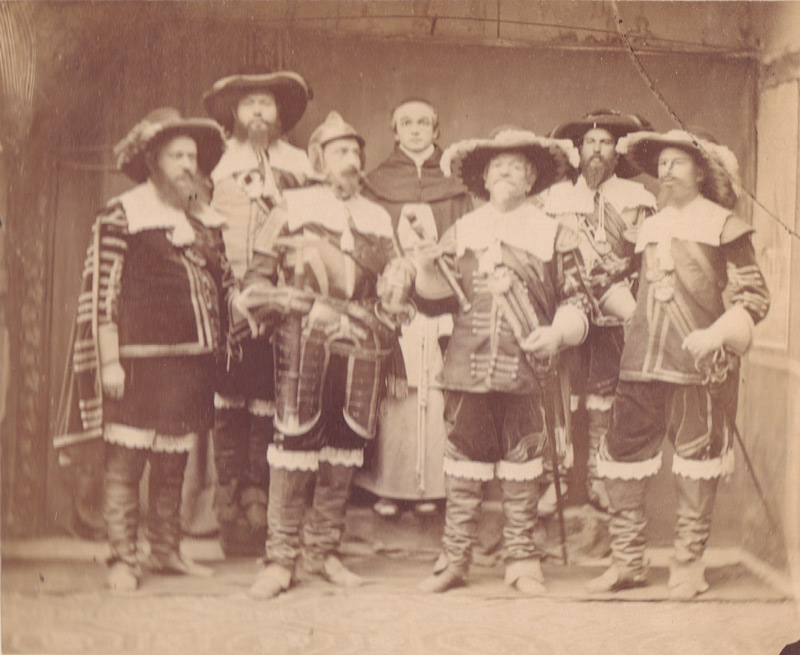 Fotografie von Tilly und Stab aus dem Festspiel "Der Meistertrunk". Abb. aus: Bischoff, Theodor: Tilly: Ein Zeitbild, Rothenburg o.T. 1881. (Bayerische Staatsbibliothek, 2289 g-1/4) HLB
