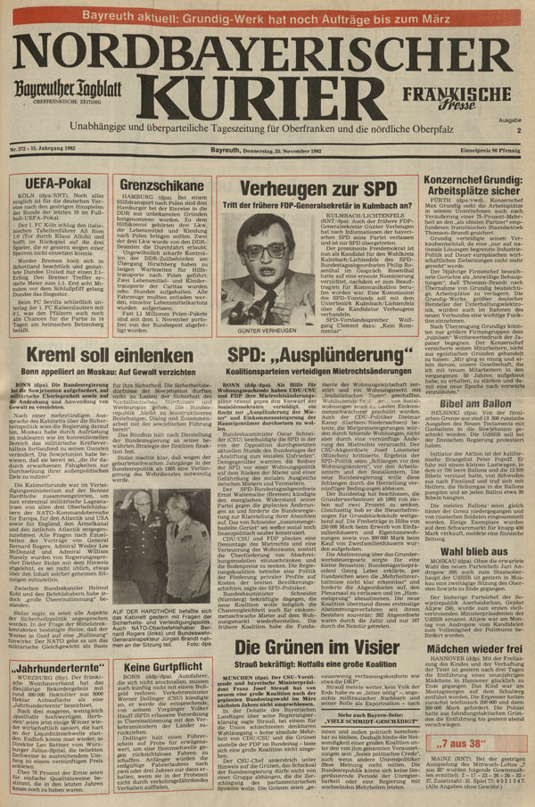 Titelblatt des Nordbayerischen Kuriers vom 25.11.1982. (Nordbayerischer Kurier) HLB