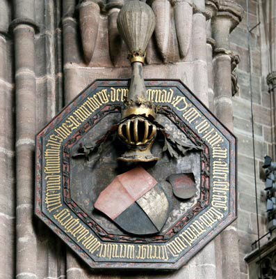 Totenschild von Werner von Parsberg aus der Lorenzkirche in Nürnberg. Er war 1442-1455 Reichsschultheiß von Nürnberg. (Fotografie: Eckard Fruhmann) HLB