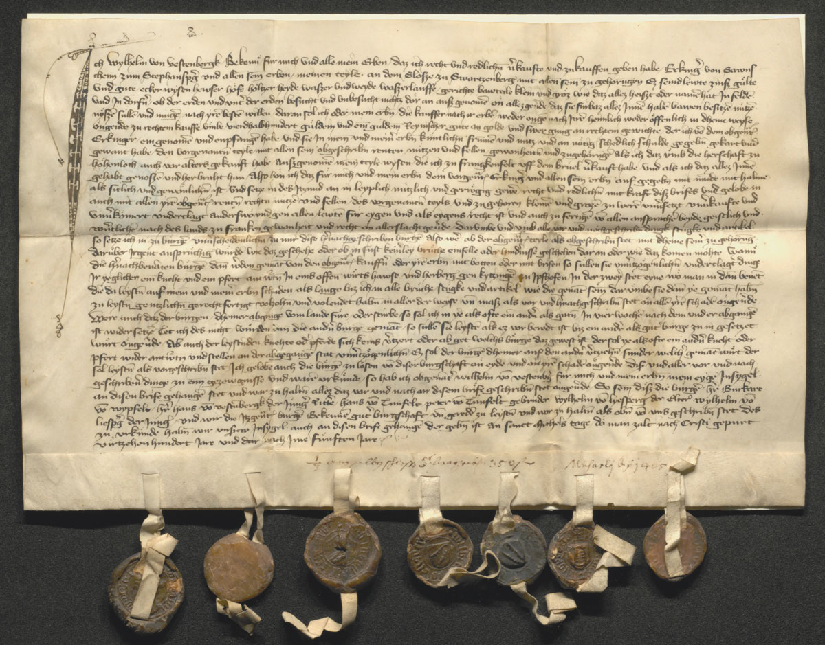 Datei:Urkunde Wilhelm Vestenberg Verkauf Burg Schwarzenberg Erkinger Seinsheim 1405.jpg
