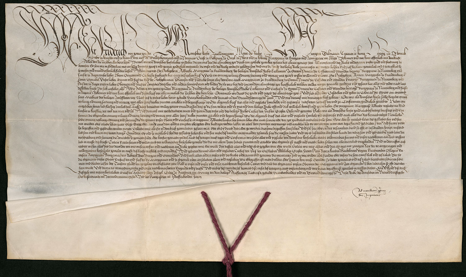 Urkunde der kaiserlichen Bestätigung der Dispositio Achillea, 1473 (GStA PK, BHP Urkunden II Nr. 11 VS)