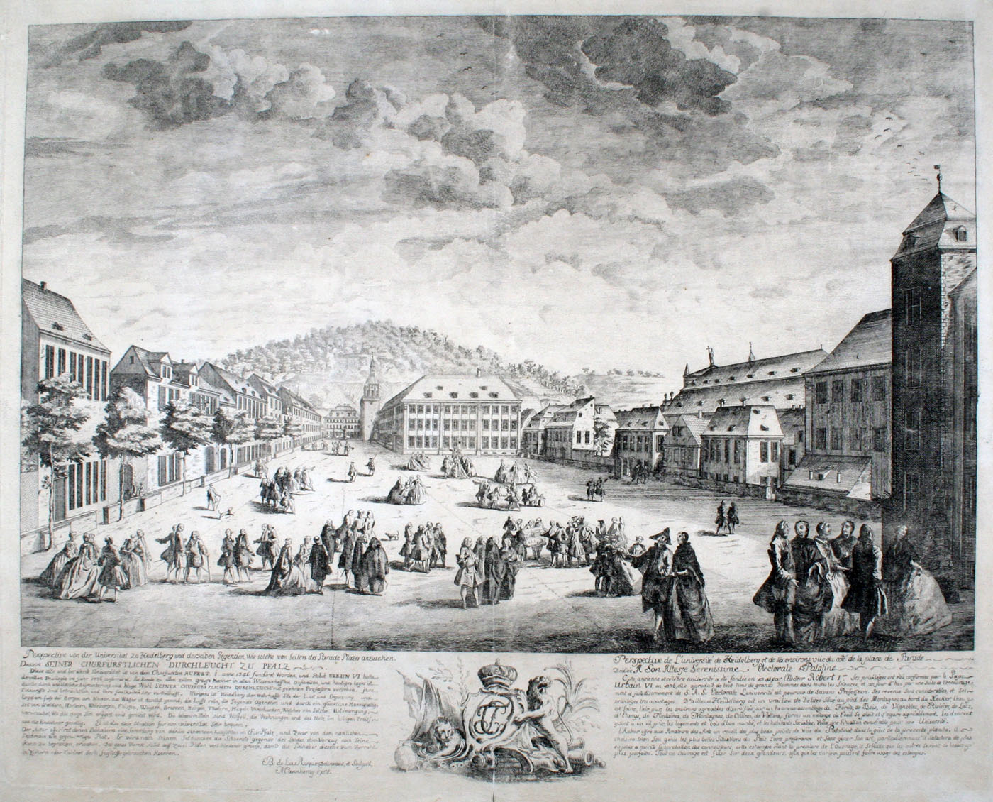 Vedute des Universitätplatzes Heidelberg. (Stich von Barthelémy de la Rocque aus dem Jahre 1785, Kurpfälzisches Museum der Stadt Heidelberg, Inv. Nr. S 2884)