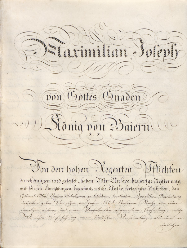 Verfassungsurkunde des Königreichs Bayern vom 26. Mai 1818. (Bayerisches Hauptstaatsarchiv, Landtag 10295) HLB