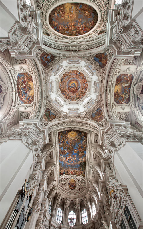 Der Vierungsturm und das Gewölbe des Chores, erbaut in der zweiten Hälfte des 17. Jahrhunderts. (Fotografie: Dionys Asenkerschbaumer, auch in: Möseneder, Karl: Der Dom zu Passau, Regensburg 2015, 59)