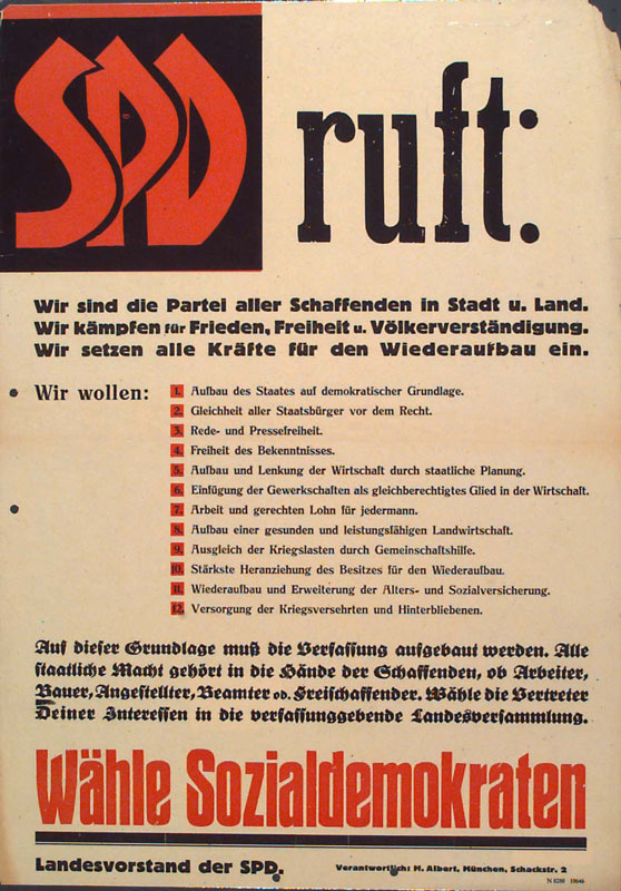 Wahlplakat der Sozialdemokratischen Partei Deutschland (SPD), 1946. (Friedrich-Ebert-Stiftung, SPDAdsD_6/PLKA000398)