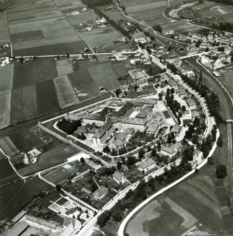 Das War Criminal Prison in Landsberg am Lech. Luftaufnahme aus dem Jahre 1956. (Stadtarchiv Landsberg a. L., Bild A_002214)