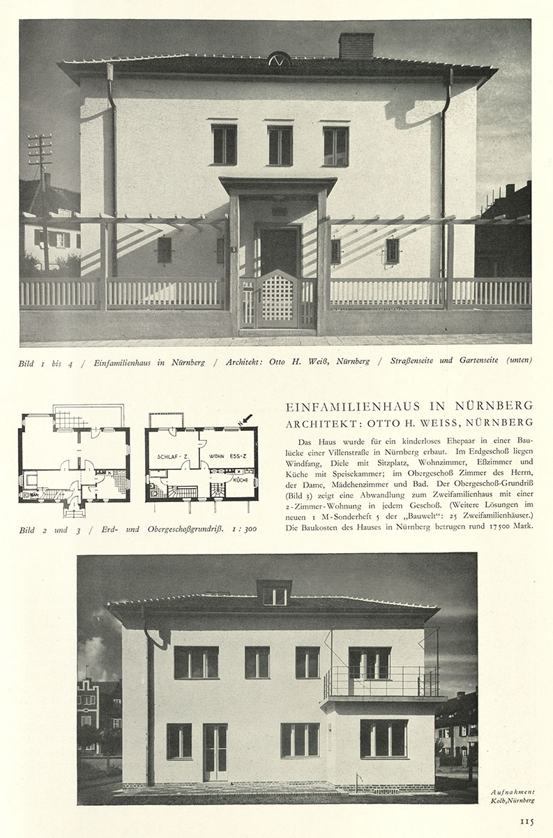 Beispiel für ein Wohngebäude der Zeit. Otto H. Weiß, Einfamilienhaus in Nürnberg. Abb. aus: Monatshefte für Baukunst und Städtebau 17 (1933), 1154. (Bayerische Staatsbibliothek, 4 A.civ. 102 g-17)