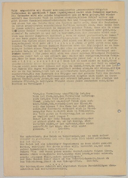 Zweite Seite des Zweiten Flugblatts der Weißen Rose (Juni/Juli 1942). (BArch, R 3018/18431) HLB
