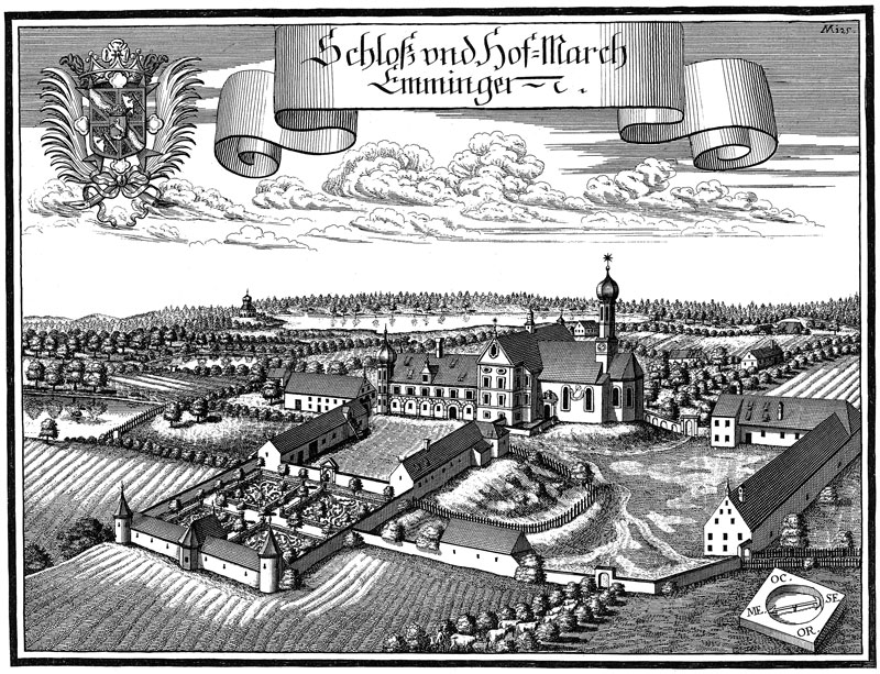 Schloss und Hofmark Emming (heute St. Ottilien), Kupferstich von Michael Wening (1645-1718), um 1700. (bavarikon) (Bayerische Vermessungsverwaltung, lizenziert durch CC BY-ND 4.0) HLB