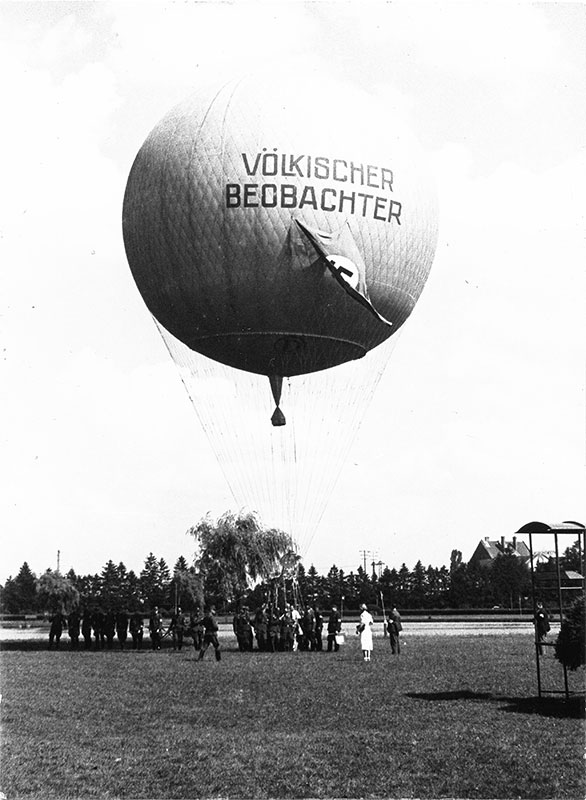 Fesselballon mit Werbeaufschrift des Völkischen Beobachters, ca 1938. (Bayerische Staatsbibliothek, Bildarchiv hoff-19911)