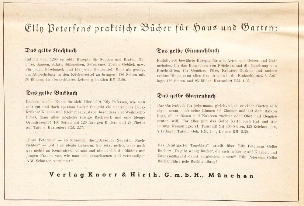 Werbungsanzeige des Knorr & Hirth-Verlages 1935. (Aus: 125 Jahre Münchener Oktoberfest, 1810 - 1935, München 1935, S. 40) (Bayerische Staatsbibliothek Bavar. 700 l,C-1/11)