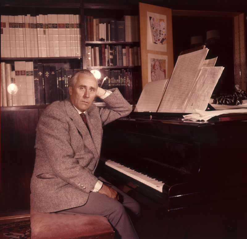 Werner Egk in seinem Wohnhaus in Lochham bei München. (Fotografie um 1952, Bayerische Staatsbibliothek Bildarchiv timp-007055)
