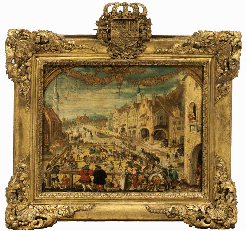 Hans Wertinger (um 1465/70-1533), Monatsbild mit Darstellung eines Turniers in der Landshuter Altstadt, um 1516–25. (Burgverwaltung Landshut)