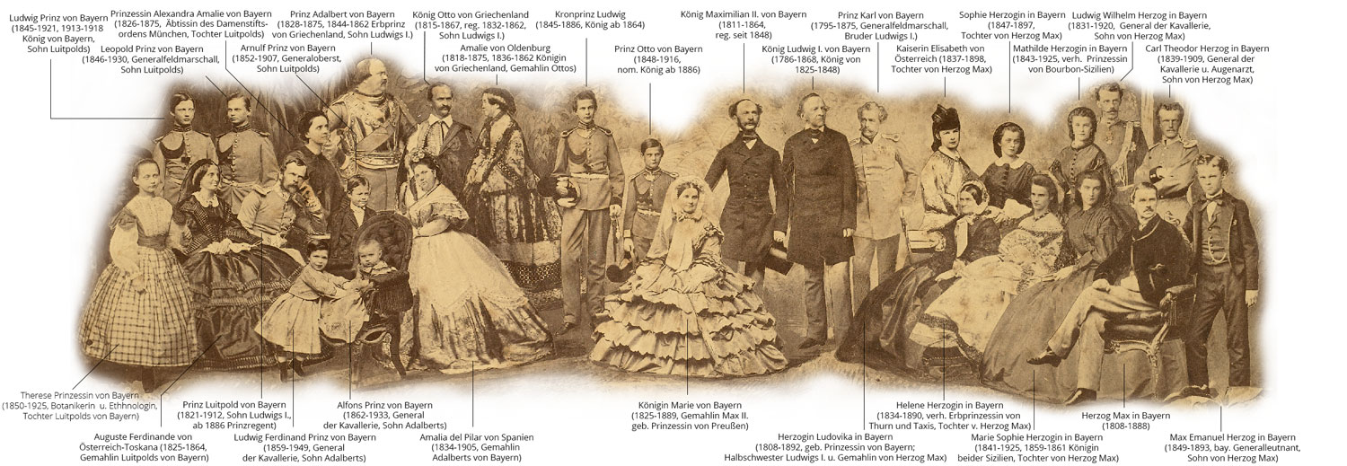 Familienbild der Wittelsbacher von 1863. Gestaltung: Stefan Schnupp. (© Bayerische Schlösserverwaltung) HLB