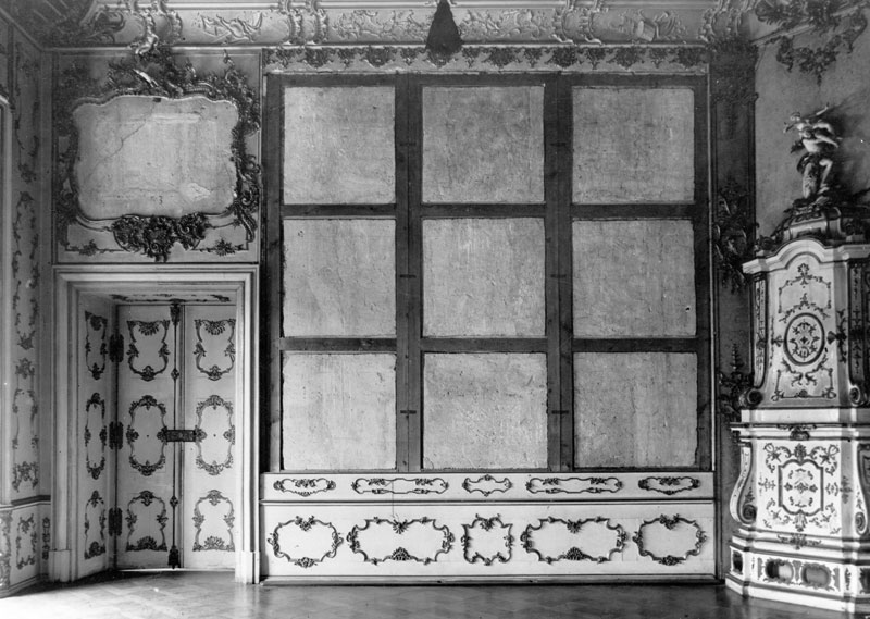 Während des Zweiten Weltkrieges wurden in allen verwalteten Objekten Schutzmaßnahmen getroffen. In der Würzburger Residenz, die 1944/45 erhebliche Schäden durch Bombentreffer und Brände erlitt wurden im Vorfeld beweliche Ausstattungsstücke, wie Gobelins, Gemälde und Mobliar entfernt und an sicheren Orten eingelagert. (© Bayerische Schlösserverwaltung)