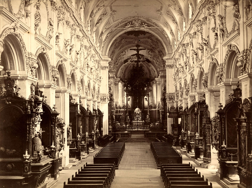Das Mittelschiff des Würzburger Doms vor seiner Zerstörung im Zweiten Weltkrieg, undatierte Fotografie. (Stadtarchiv Würzburg)