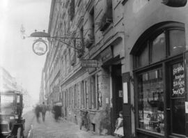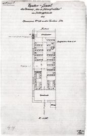 In einem rund 80 Plätze fassenden Rückgebäude des Hauses Türkenstraße 28 in München (im Vorderhaus befand sich der Gasthof "Zum goldenen Hirschen") eröffneten "Die Elf Scharfrichter" am 13. April 1901 ihr Theater. (Stadtarchiv München, DE-1992-FS-HB-XXIII-327)