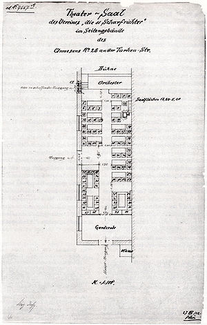 Einrichtungsplan des "Scharfrichter"-Theaters vom September 1902. (Staatsarchiv München, Pol. Dir. 2057/1)