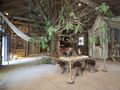 The Moroccan House was originally placed in a clearing in the mountain forest high above Linderhof. After Ludwig II's death, it was dismantled and sold. Following its repurchase in 1994, it was relocated to its current position in the park. Hunding's Hut and Hermitage were located in the Ammerwald forest near the border with Tyrol. After the king's death, they became popular excursion destinations. The Hunding's Hut was destroyed by fire in 1945, and the Hermitage fell into disrepair during the 1960s. Both buildings were reconstructed at their current site in the park; the Hunding's Hut was completed in 1990, and the Hermitage in 2000.