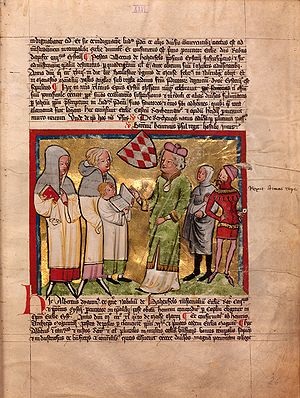 Diese Darstellung im Pontifikale Gundekarianum, einem nach dem Eichstätter Bischof Gundekar II. benannten liturgischen Buch (entstanden um 1072, erweitert bis 1697), zeigt Eichstätter Domherren in mittelalterlicher Tracht. Über dem Chorrock trugen sie einen fransenbesetzten grauen Pelzkragen mit Kapuze. (Diözesanarchiv Eichstätt, Codex B 4, fol. 26r.)