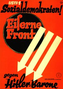 Plakat der SPD zur Reichstagswahl 1932: "Liste: 1 Sozialdemokraten! Eiserne Front gegen Hitler-Barone". (SPD/AdsD, 6/PLKA002669)
