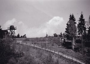 Tschechoslowakischer Hochspannungszaun zu Mitte der 1950er Jahre an der Grenze bei Waldmünchen. (Staatsarchiv Amberg)