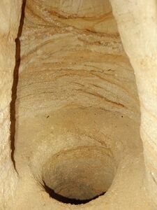 Ein weiterer Befund sind Bohrlöcher mit Durchmessern zwischen 8 und 15 cm, die sich verengen und meist enden, bevor sie nach mehreren Metern nach außen gelangen.