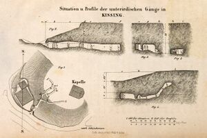 Abgesehen von Hofanlagen kommen Erdställe zudem unter Kirchen und Friedhöfen vor, z.B. in Aying (Abb. 15). Hier ist hinsichtlich Planung und Anlage die baugeschichtliche Beziehung dieser Erdställe zu den Sakralbauten interessant, die auch eine Funktion als Zufluchtsort erfüllten.