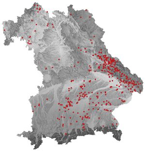 In Schwaben sind westlich des Lechs bisher kaum Beispiele bekannt. Vermehrte Entdeckungen sind in den letzten Jahren im oberbayerischen Raum zu verzeichnen.