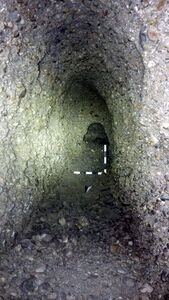 Abb. 10: Horizontalschlupf im Erdstall von Aying. (Martin Straßburger)