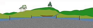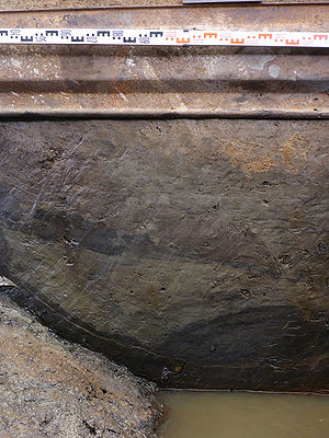 - Darauf folgen mächtige organische Lagen, bestehend aus Faulschlamm und Torfen sowie Tonablagerungen. Sie dokumentieren teilweise offene Wasserflächen. Eine frühmittelalterliche Weihernutzung wechselt sich räumlich mit sumpfigen Zonen ab.