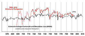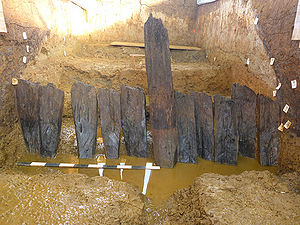 - Der Aushub der Baugrube ist über die Altersbestimmung der Bauhölzer in das Jahr 793 datiert.