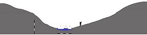 Modell eines Scheitelkanals mit Wasserzuleitung. Abb. aus: Ronald Bockius, Künstliche Schifffahrtswege. (Von den Autoren zur Verfügung gestellt)