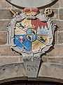 Das Wappen von Fürstbischof Johann Gottfried von Guttenberg (1645-1698, reg. 1684-1698) über dem Hauptportal von Stift Haug. (Foto von Wolfgang lizensiert durch CC BY-SA 3.0 via WürzburgWiki)