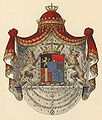 Der Fränkische Rechen im Wappen des Königreichs Bayern. Wappenzeichnung des Reichsheroldenamtes für die auswärtigen bayerischen Vertretungen anlässlich der Neugestaltung des Wappens des Königreichs Bayern 1835. Dieses Wappen wurde bis 1918 verwendet. (Bayerisches Hauptstaatsarchiv, Gesandtschaft Stuttgart 45)
