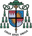Der Fränkische Rechen im Wappen des Würzburger Bischofs em. Dr. Friedhelm Hofmann (geb. 1942). Der Wahlspruch lautet: "Crux spes unica" ("Das Kreuz - einzige Hoffnung"). (Veröffentlichung mit Genehmigung von Bischof em. Dr. Friedhelm Hofmann)