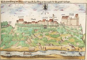 Schloss Kirchberg, 1559. Abb. aus: Ehrenspiegel des Hauses Österreich (Buch VII), Augsburg 1559. (Bayerische Staatsbibliothek, Cgm 896)