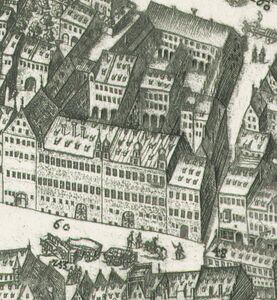 Ansicht der Fuggerhäuser von 1626. Ausschnitt aus Stadtplan von Augsburg von Wolfgang Kilian (1581-1662) von 1626. (bavarikon) (Bayerische Staatsbibliothek, Bildarchiv port-000309)