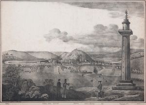 Mit der Grundsteinlegung der Konstitutionssäule in Gaibach (Gde. Volkach, Lkr. Kitzingen) am 26. Mai 1821 begann ein von Franz Erwein Graf von Schönborn (1776-1840) initiierter Ausbau seines Besitzes zu einem Zentrum des bayerischen Frühkonstitutionalismus in Franken. Spätestens ab der Einweihung der Säule im Jahr 1828 in Gegenwart des mit Schönborn freundschaftlich und im Geiste des liberalen Konstitutionalismus eng verbundenen König Ludwig I. (1786-1868, König 1825-1848) fanden an Säule und im Konstitutionssaal des Schlosses an den Jahrestagen der Verfassung Verfassungsfeiern (Konstitutionsfeste) statt. Dabei wurde regelmäßig im Kandelaber der Säule ein weithin sichtbares Feuer entzündet. Nach ersten Feiern 1829 und 1830 fand noch 1831 eine Feier in vermutlich kleinerem Rahmen statt. Ähnliche Verfassungsfeiern wie in Gaibach hatten sich in einem breiten Spektrum zwischen bürgerlicher Initiative und monarchischer Steuerung u. a. auch in Baden und in Württemberg etabliert.