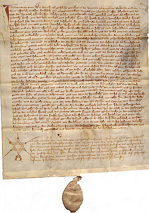 - Der oder die Gerichtsschreiber: Gerichtsangestellte, welche die Registereinträge vornahmen und Vorladungen und Urkunden ausstellten sowie gegebenenfalls weitere Briefe verfassten, in denen andere Geistliche um Mithilfe gebeten wurden (etwa bei der Verkündigung von Vorladungen in Gottesdiensten oder bei der Befragung möglicher Zeugen). Dadurch wurde der gesamte Diözesanklerus im weitesten Sinne zu Mitarbeitern des bischöflichen Gerichts.