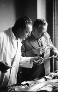 Atto Retti-Marsani (1892-1961), ein langjähriger leitender Angestellter, und Heinrich Hoffmann bei der Prüfung von Fotos im Photohaus Heinrich Hoffmann in der Amalienstraße 25, München, 1938. (Bayerische Staatsbibliothek, Bildarchiv hoff-60244)