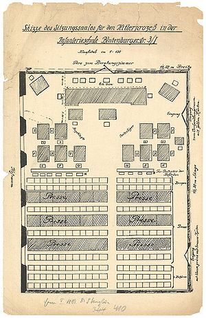 Skizze des Sitzungssaales in der Infanterieschule. (Staatsarchiv München, STAANW 3099)