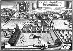 Schloss Griesbeckerzell (Gde. Aichach), Kupferstich von Michael Wening (1645-1718), um 1700. (bavarikon) (Bayerische Vermessungsverwaltung, lizenziert durch CC BY-ND 4.0)