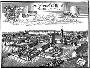 Schloss und Hofmark Emming (heute St. Ottilien), Kupferstich von Michael Wening (1645-1718), um 1700. (bavarikon) (Bayerische Vermessungsverwaltung, lizenziert durch CC BY-ND 4.0)