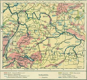 Die Karte verdeutlich die Schwerpunkte der Industrialisierung im Jahr 1920 (Ausschnitt aus: Bayerische Staatsbibliothek, Mapp XI,20 b).