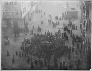 Teilnehmer der Friedensdemonstration am 30. Januar 1918 auf dem Rückweg von der Demonstration auf dem Nürnberger Egidienplatz. (Stadtarchiv Nürnberg, A76 RF-400-1)