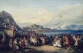 Das Lager von General Georgios Karaiskakis (1782-1827) vor Kastella bei Piräus am 22. April 1827. Ölgemälde von Theodoros Vryzakis (1814-1878), 1855. Das Gemälde zeigt das Lager von Karaiskakis kurz vor der Einnahme Athens durch griechische und westeuropäische Verbände; am Fernrohr steht Karl Wilhelm von Heideck (1788-1861). (Gemeinfrei via Wikimedia Commons)