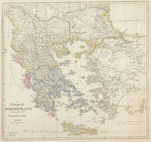 „Das Königreich Griechenland mit dem grössten Theile der Europäischen Türkei.“ Karte von Adam Gottlieb Schneider (1745-1815), 1834. (Bayerische Staatsbibliothek, Mapp. XVIII,6)