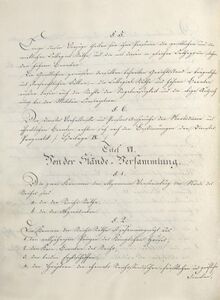 - Verfassungsurkunde des Königreichs Bayern vom 26.5.1818 (GBl. 1818, S. 101-140) sowie Verfassungsbeilage IV: Edikt, die staatsrechtlichen Verhältnisse der vormals Reichsständischen Fürsten, Grafen und Herren betr.; Verfassungsbeilage V: Edikt über den Adel im Königreiche Baiern); Verfassungsbeilage VII: Edikt über die Familienfideikommisse (GBl. 1818, S. 189-220, 277-324).