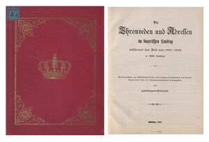 - Verhandlungen der Kammer der Abgeordneten der Ständeversammlung (des Landtags) in den Jahren 1819-1918. Stenographische Berichte, Beilagenbände, Protokolle, Besondere Ausschüsse, München 1819-1918: